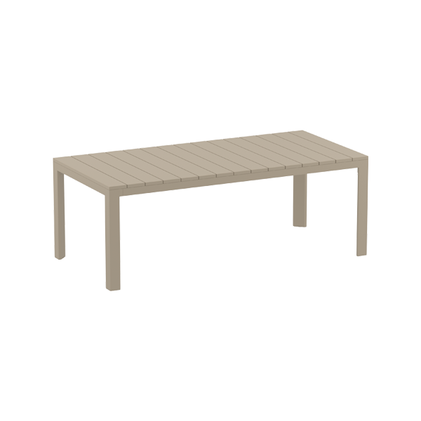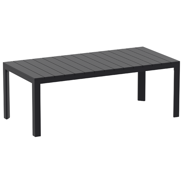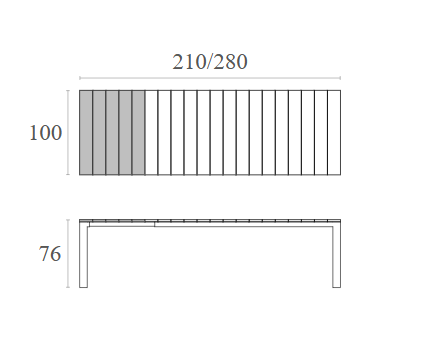 Extendible table from 210 to 280 cm in polypropylene with aluminium frame . Easily expandable, giving you a choice of two size options. Smart extending mechanism makes it easy to adjust the table to your preferred size. For indoor and outdoor use with UV protection