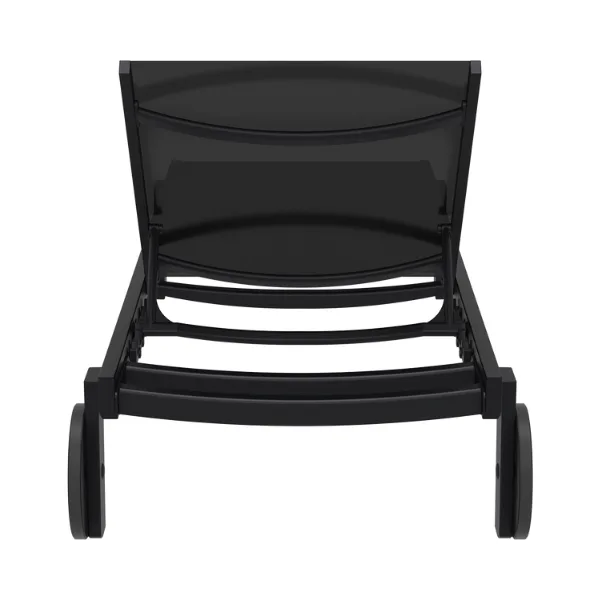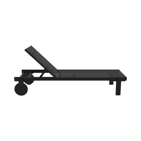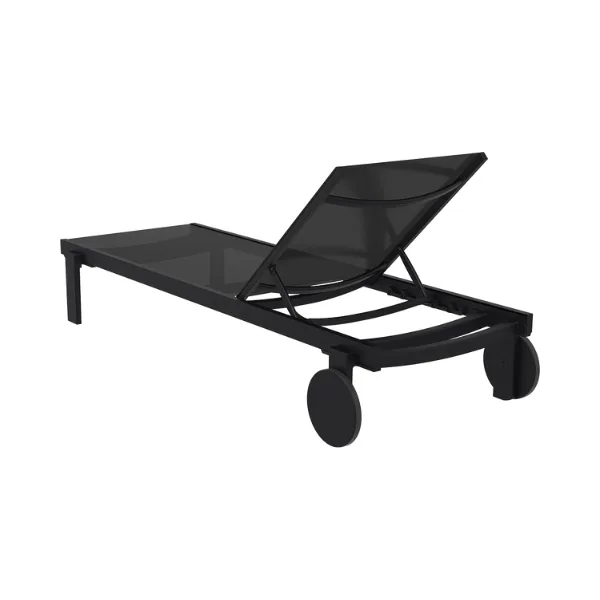 Casablanca sunlounger with legs in resin reinforced with glass fiber combined with lacquered aluminium structure. Cover in breathable synthetic replaceable fabric, back reclining in 5 positions, with non-slip feet and rubber wheels. Two materials combined together to make a very resistant, functional light-weight and stackable sunlounger. Its minimalist design and refined details evoke a sense of luxury, transforming any outdoor space to a retro style.