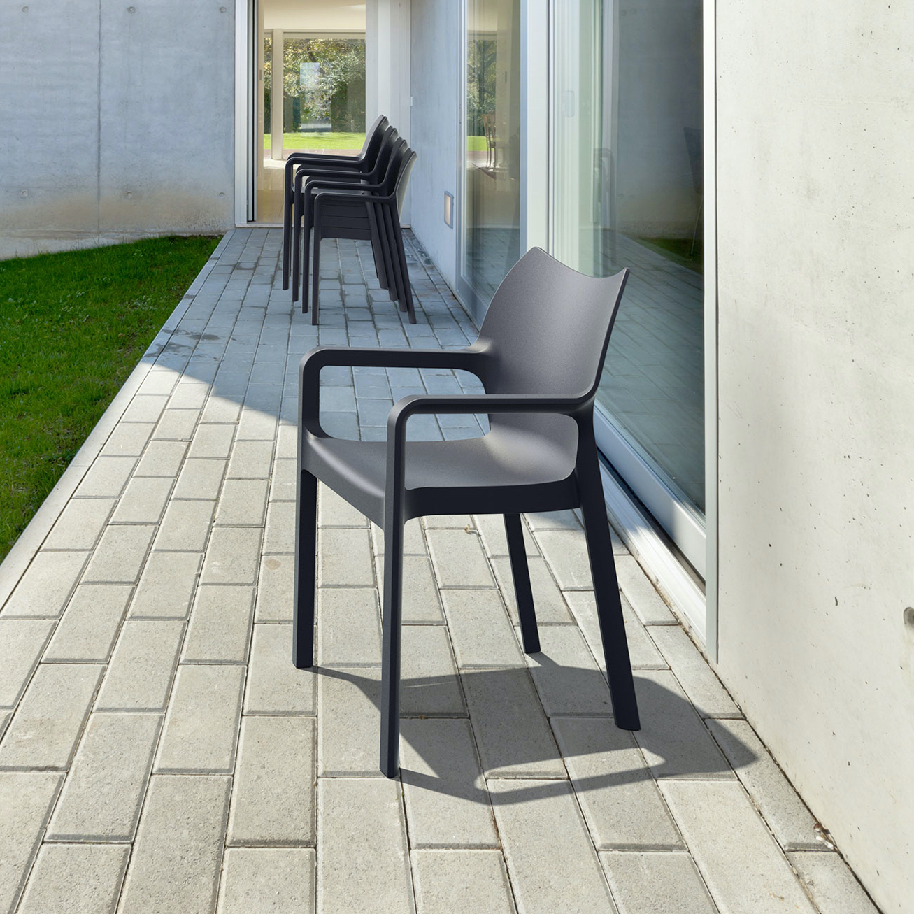 Diva armchair is produced with a single injection of polypropylene reinforced with glass fiber obtained by means of the latest generation of air moulding technology with neutral tones. For indoor and outdoor use.