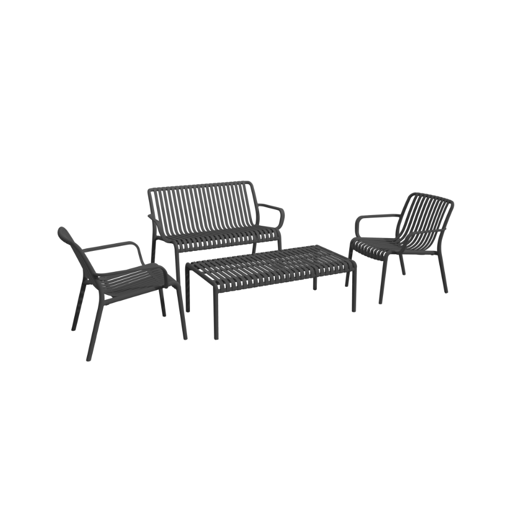 The Isabella Patio Set is where style meets durability. Designed for relaxed outdoor living, this sleek and modern 4-piece set includes one spacious occasional sofa, two matching armchairs, and a coordinating slatted coffee table. Crafted from durable polypropylene, it’s weather-resistant, easy to clean, and perfect for patios, balconies, or garden lounging. Available in timeless Grey or refreshing Green to complement your outdoor aesthetic.