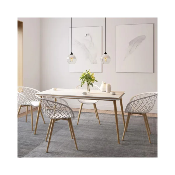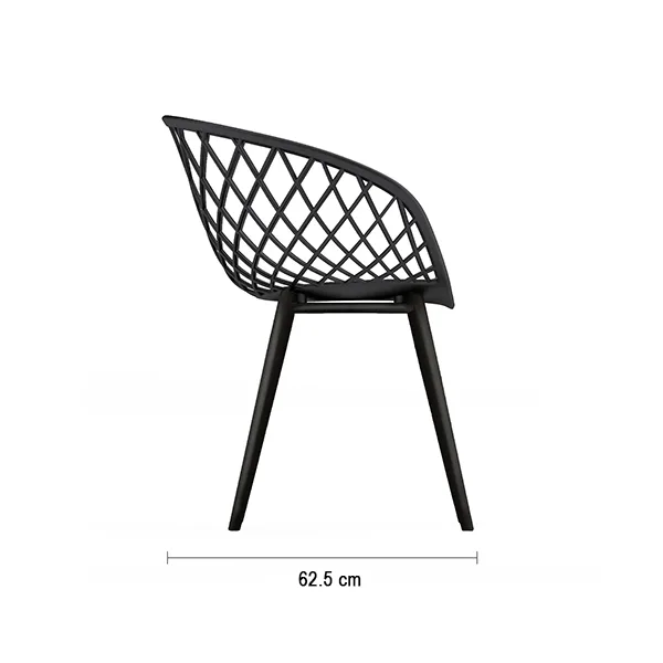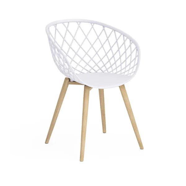 Indoors, it livens up the dining table but is also perfect as an entry chair or desk chair. It's as versatile as a chair can be. The combination of the airy design with faux wood durable steel legs complements just about any space. The variety of colours adds a touch of whimsy that you'll appreciate. The contoured shape is ergonomically designed for comfort. Smooth surfaces are weatherproof and easy to clean.