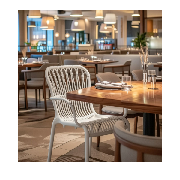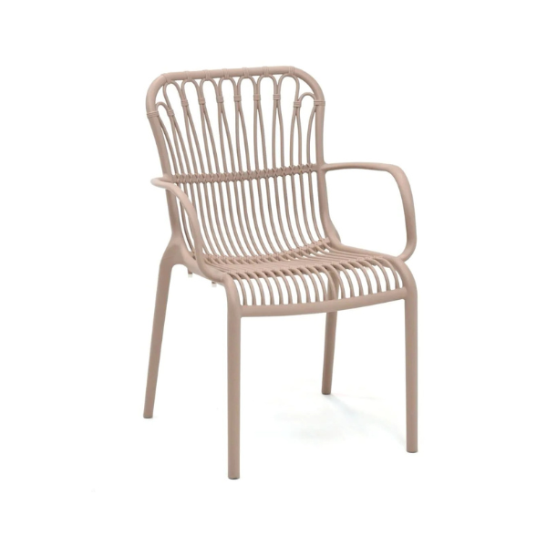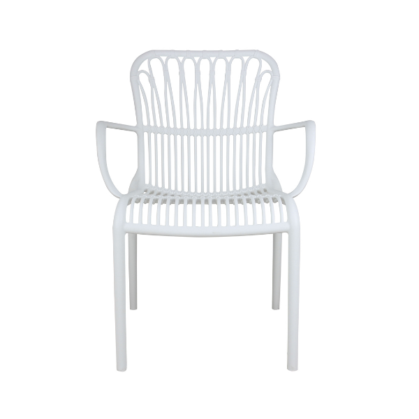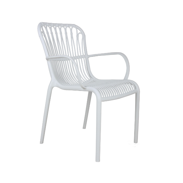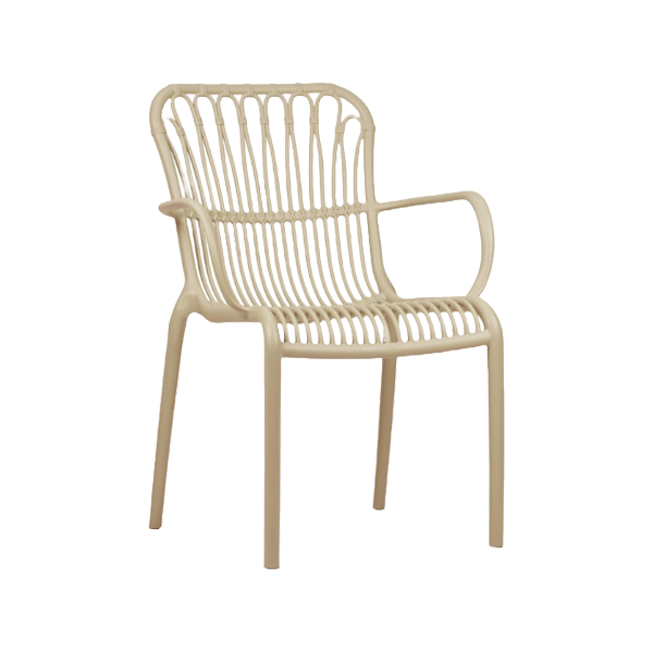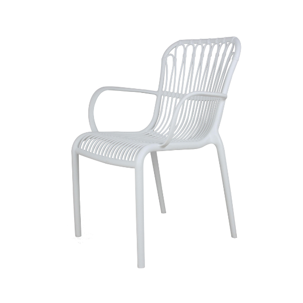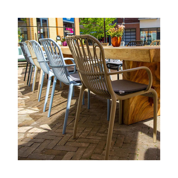 LOLA TERRACE CHAIR With its airy design, the Lola Terrace Chair is a real eye-catcher. The seat with armrest is very comfortable and the colour creates a fresh look on the terrace. The Lola Terrace Chair is stackable, making it easy to store! UV treated