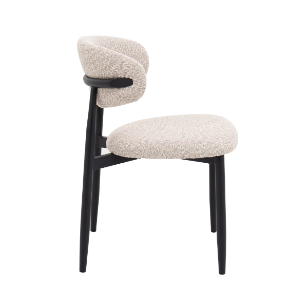 The harmonious blend of Nordic and Mid-Century in the Lucien Dining Chair makes it an irresistible option for kitchen and dining spaces. The curved metal frame has a black finish and is cross-fixed, making the Lucien durable and long-lasting for a high-quality finish built to last. Crafted for comfort, the seat is upholstered in three fabric options.