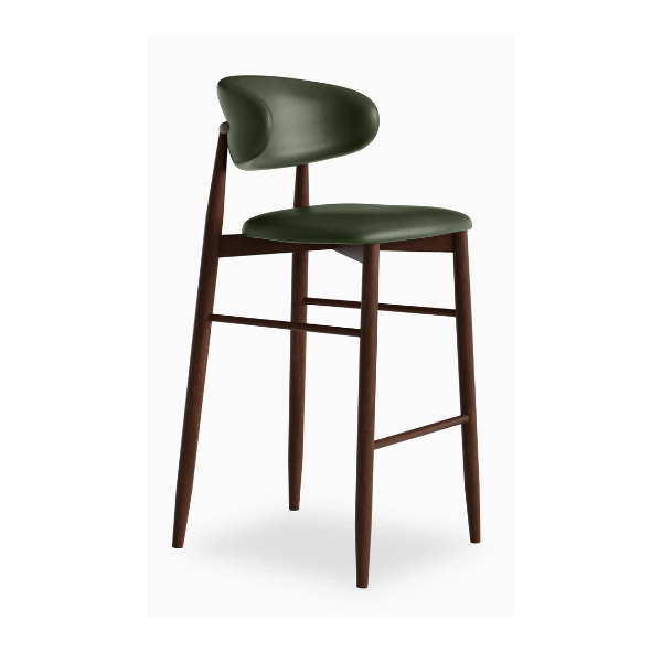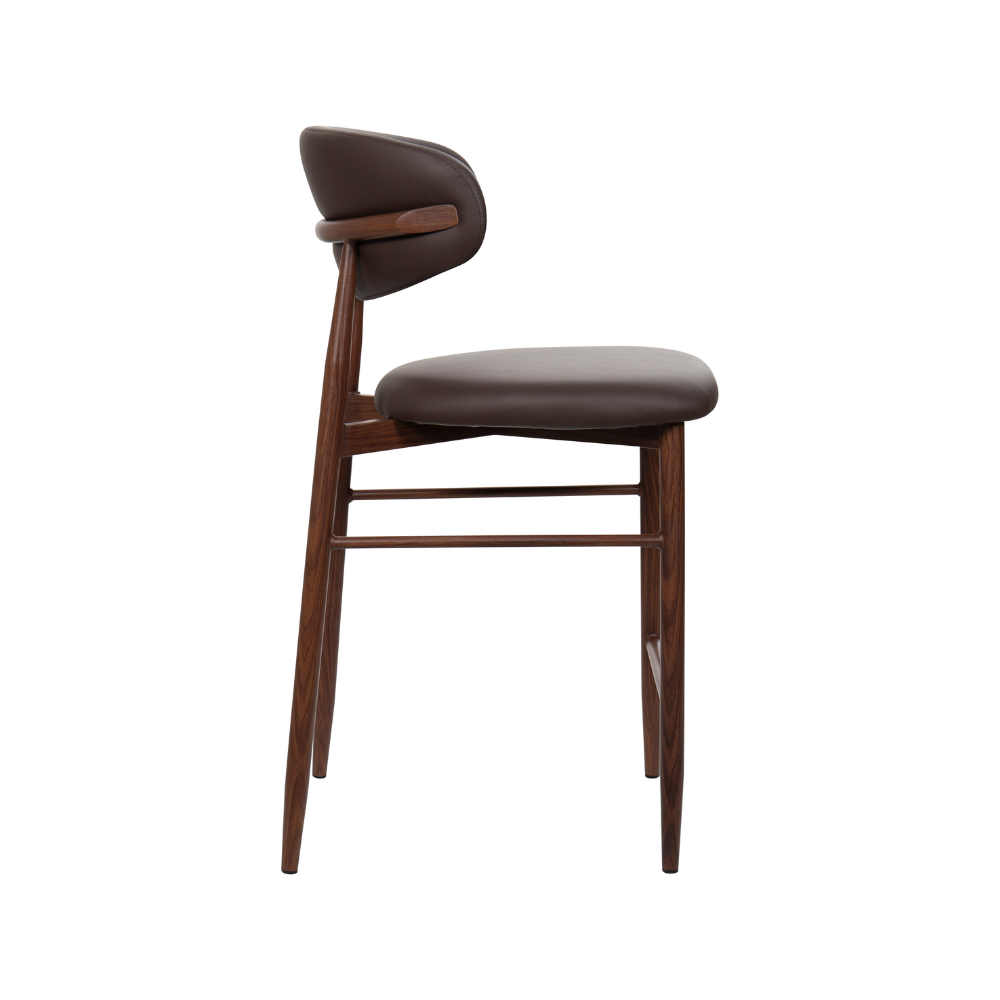 The harmonious blend of Nordic and Mid-Century in the Lucien Kitchen Stool makes it an irresistible option for kitchen counters. The curved metal frame has a walnut wood finish and is cross-fixed, making the Lucien durable and long-lasting for a high quality finish built to last. Crafted for comfort!
