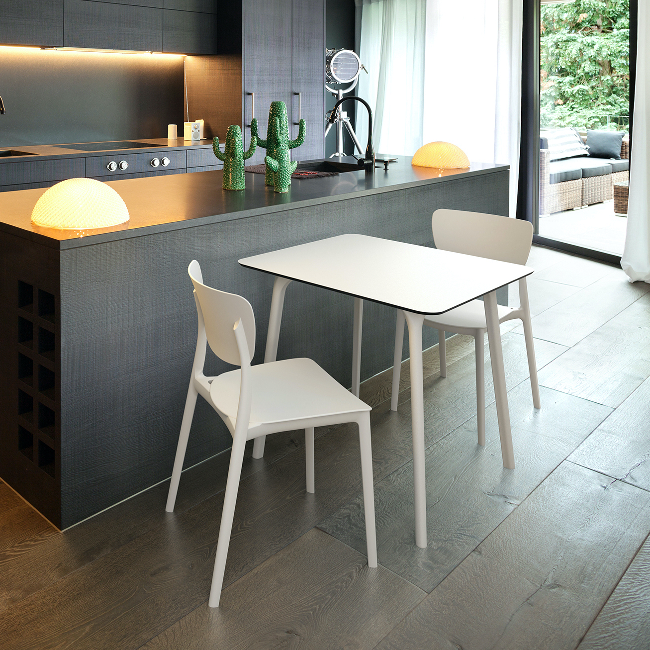 Monna chair is produced with a single injection of polypropylene reinforced with glass fiber obtained by means of the latest generation of air moulding technology with neutral tones. For indoor and outdoor use.