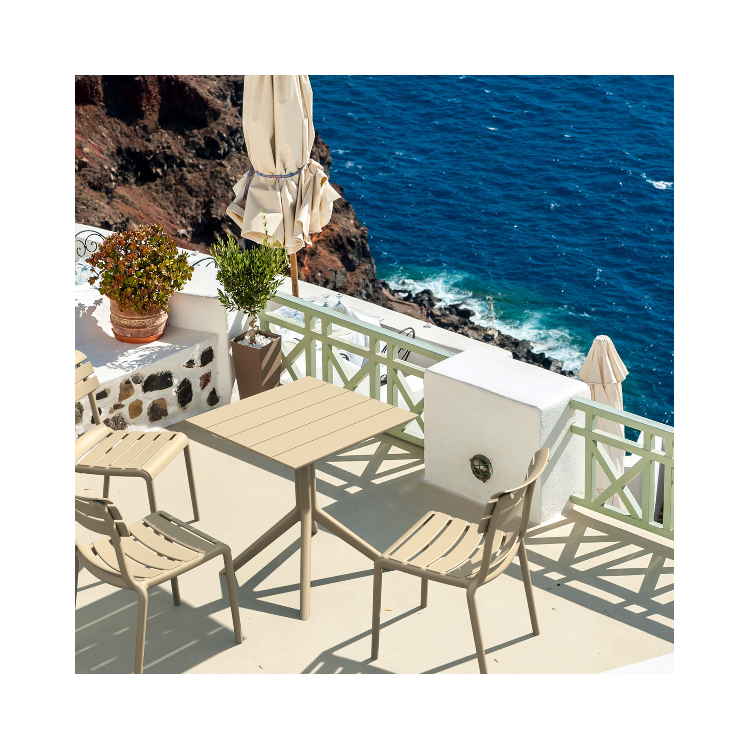Paris Table is made of durable weather-resistant resin. Metallic frame will never unravel, rust or decay. It is UV protected which insures the colors will not fade. Can be disassembled. For indoor and outdoor use.