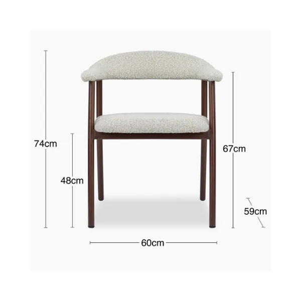 Bring modern charm and timeless design to any home with the Suki Carver Dining Chair. Featuring walnut-effect metal legs, it combines durability with a natural aesthetic. The soft boucle or mohair velvet seat and backrest offer both comfort and style, while the clean lines and simple structure are inspired by Scandinavian style. With a focus on minimalist yet cosy elements, this chair effortlessly enhances your dining space, offering a perfect blend of function and warmth. For a rich depth of colour and unique softness.