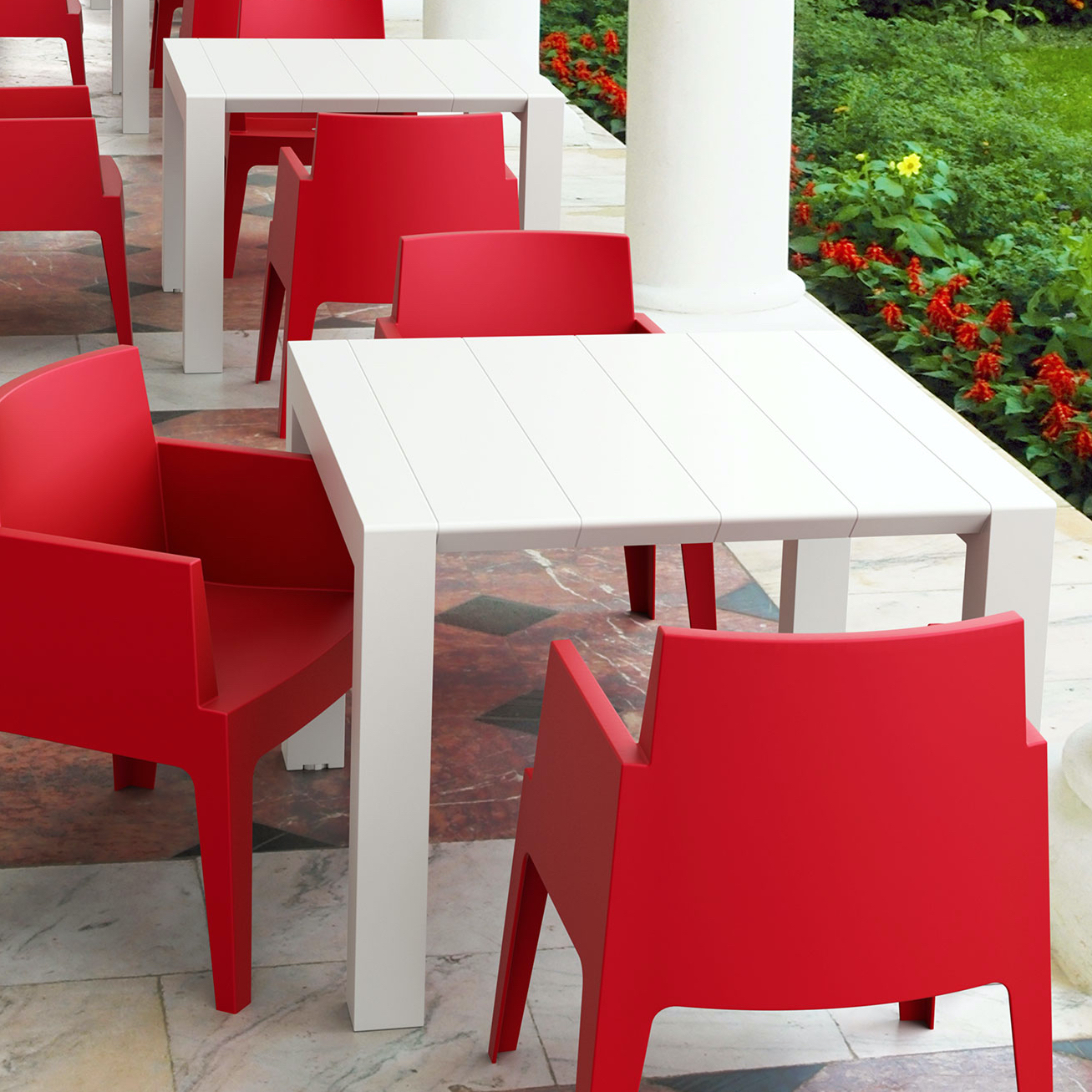 The Siesta Exclusive Vegas table extends from 100 to 140 cm and is produced from polypropylene reinforced with glass fibre. The smart extending mechanism makes it easy to adjust the table to your preferred size. This UV protected table is suitable for use indoors and outdoors. *On dark colours, shadows and other minor faults are more evident than on lighter colours and are therefore standard. *Please note that this product requires simple assembly. Set up instructions will be included in the package.
