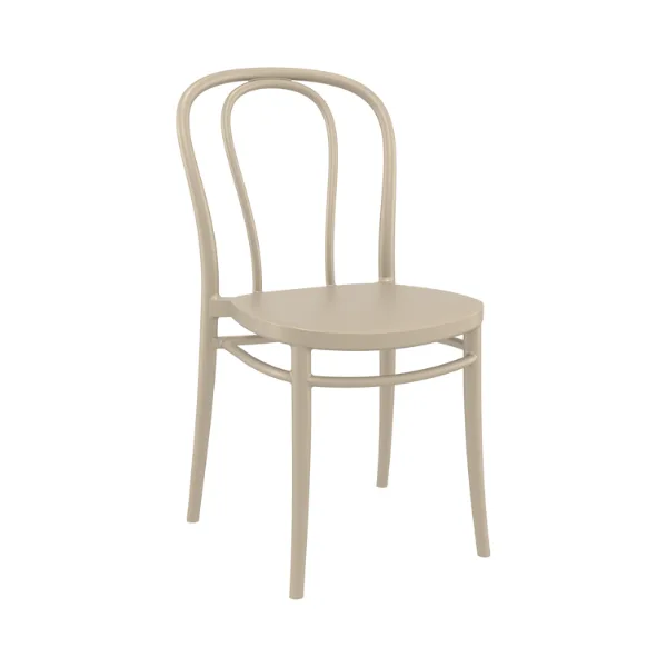 Victor stacking chair is produced with a single injection of polypropylene reinforced with glass fiber obtained by means of the latest generation of air moulding technology with neutral tones. For indoor and outdoor use.